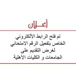 الى جميع الطلبة الراغبين بالتقديم على الجامعات و الكليات الأهليه . تم فتح الرابط الألكتروني الخاص بتفعيل الرقم الامتحاني لغرض التقديم . لذا يرجى مراجعة مركز الارشاد في مركز الحاسبة … تابع قراءة أعــلان