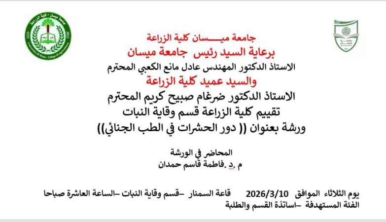 تحت رعاية السيد عميد كلية الزراعة، الأستاذ الدكتور ضرغام صبيح كريم المحترم، وبإشراف مباشر من…