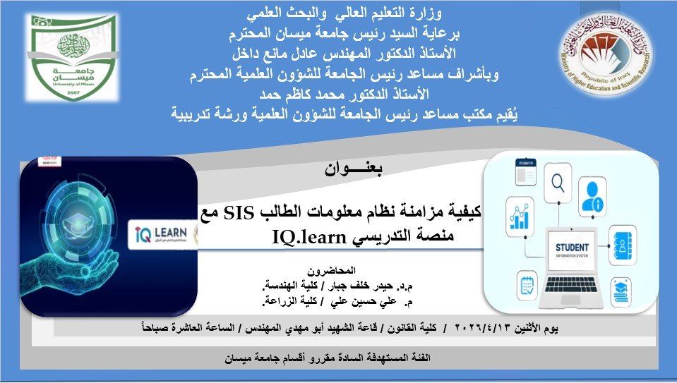 برعاية السيد رئيس جامعة ميسان الأستاذ الدكتور عادل مانع الكعبي المحترم، وبإشراف مباشر من عميد…
