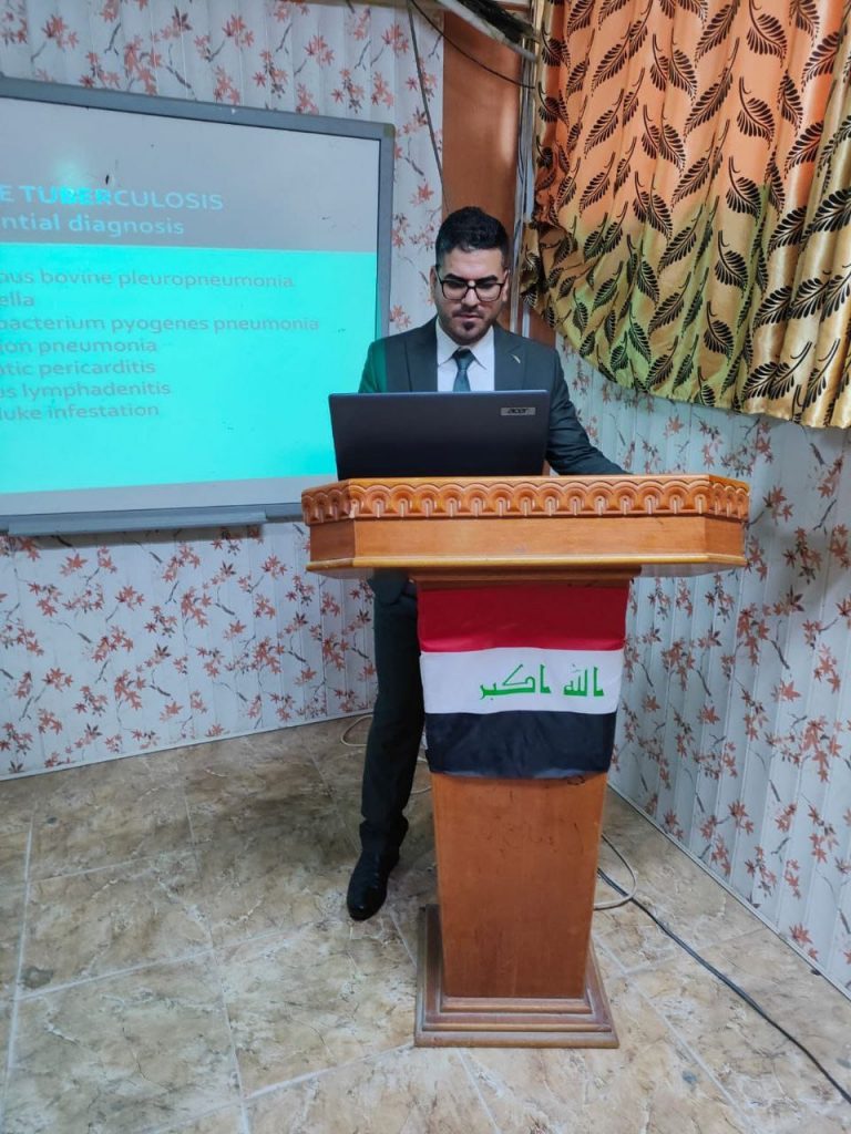والتدريسي حميد مجيد راضي من كلية الزراعة وحيث تم التطرق فيها الى مسببات التدرن البقري وطرق انتقاله الى الانسان