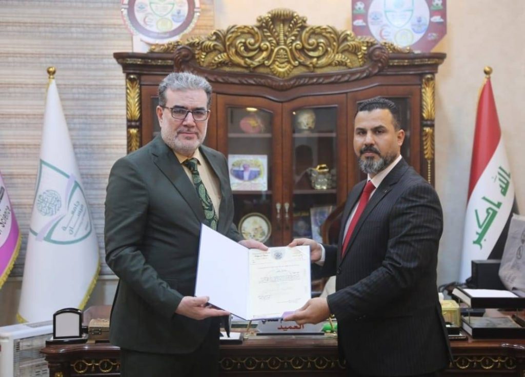 فيما التقى أ.م.د تحسين صدام فندي عميد كلية العلوم لجنة المناقشة مثمنا جهودهم بكتاب شكر وتقدير