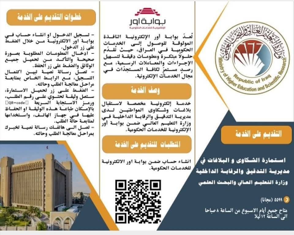 اخبار الوزارة استمارة الشكاوى والبلاغات في مديرية التدقيق والرقابة الداخلية 17 أبريل، 202517 أبريل، 2025 #استمارة الشكاوى والبلاغات في مديرية التدقيق والرقابة الداخلية #وزارة التعليم العالي