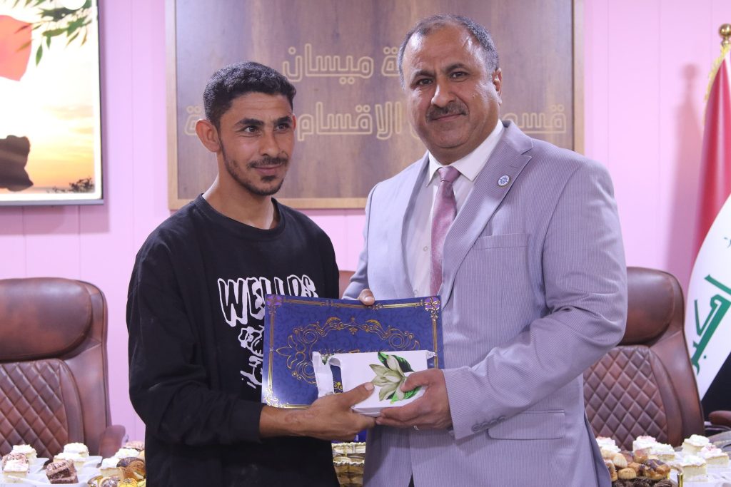 رعى الأستاذ الدكتور عادل مانع الكعبي رئيس جامعة ميسان ، احتفالية تكريم منتسبي وعمال الخدمات التي نظمتها مديرية الأقسام الداخلية بحضور مدير الأقسام الداخلية المدرس حيدر ناصر مناتي وعدد من منتسبي الجامعة وجمع غفير من الشرائح العمالية .
