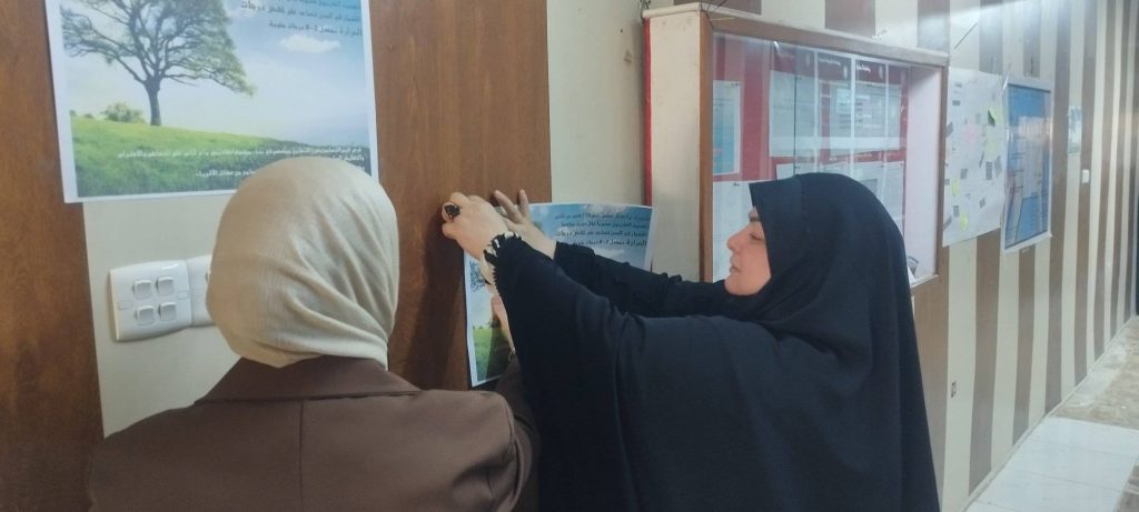 وتضمنت الحملة تصميم وطباعة مجموعة من البوسترات التثقيفية التي سلطت الضوء على الأهمية البيئية للتشجير ودوره الحيوي في الحد من آثار التغير المناخي. وأشارت إحدى البوسترات إلى أن “شجرة واحدة يمكن أن تمتص نحو 150 كغم من غاز ثاني أكسيد الكربون سنويًا”، ما يساهم في تنقية الهواء وخفض درجات الحرارة في المناطق الحضرية بمعدل يتراوح بين 2 إلى 8 درجات مئوية.