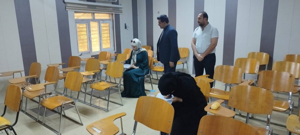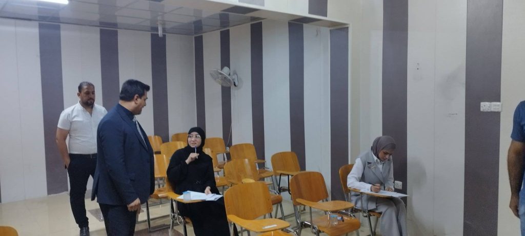 وقد أجرى السيد عميد الكلية الأستاذ المساعد الدكتور ضرغام صبيح كريم جولة تفقدية في القاعات الامتحانية، اطلع خلالها على مجريات الامتحانات وطبيعة الأسئلة، مشيدًا بجهود اللجان الامتحانية والكادر التدريسي والإداري في توفير بيئة ملائمة لأداء الامتحانات بكل سلاسة.