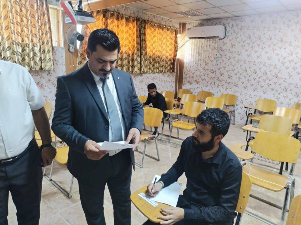 وأكد الأستاذ الدكتور ضرغام صبيح كريم عميد الكلية، خلال تفقده القاعات الامتحانية، على أهمية تهيئة الأجواء المناسبة للطلبة لأداء أمتحاناتهم بكل انسيابية، مشيدًا بالجهود المبذولة من قبل رؤوساء الاقسام و اللجان الامتحانية والكادر التدريسي والإداري لإنجاح هذه المرحلة.