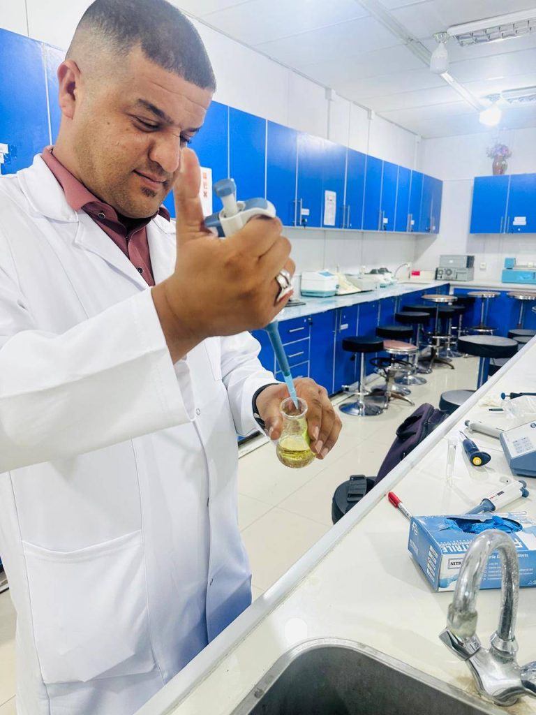 ضمن إطار التعاون العلمي بين كليات جامعة ميسان، أجرى طلبة الدراسات العليا (الماجستير) في قسم وقاية النبات – كلية الزراعة، التجارب العلمية والعملية الخاصة بمادة الكيمياء الحيوية، وذلك بإشراف الأستاذ الدكتور عزالدين خزعل نجم، في مختبرات الكيمياء الحيوية بكلية الطب.
