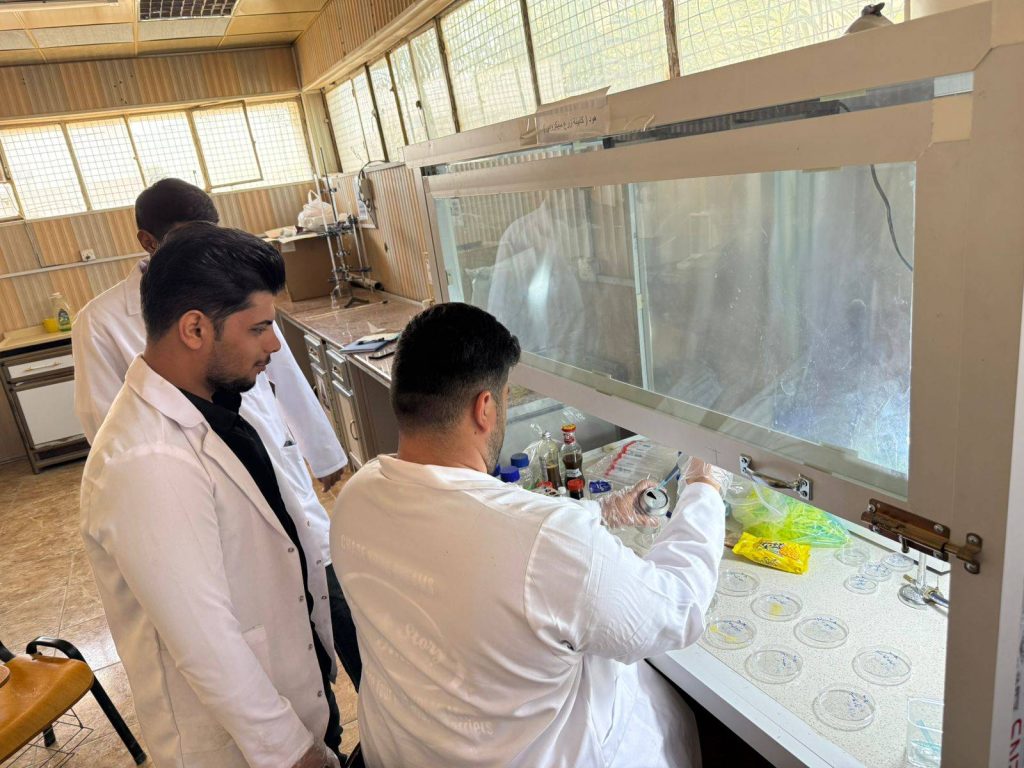 ضمن إطار النشاطات العلمية لقسم علوم الأغذية في كلية الزراعة – جامعة ميسان، نفذ طلبة المرحلة الثالثة نشاطًا علميًا تطبيقيًا تضمن إجراء فحوصات مايكروبيولوجية لمجموعة من الأغذية شملت: (البسكويت، الأجباس، الحلاوة السمسمية، المشروبات الغازية، المياه المعبأة، ومياه الإسالة)، وذلك ضمن متطلبات مادة أحياء الأغذية العملي.