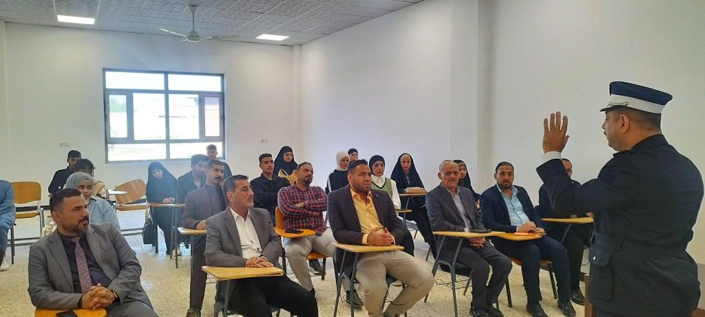 “التنمية المجتمعية ودور تطبيق قوانين المرور”، قدّمها كلٌّ من: أ.م.د. علي عزيز و المقدم هيمن حسن، وبحضور عدد من أساتذة الكلية وطلبتها وموظفيها.