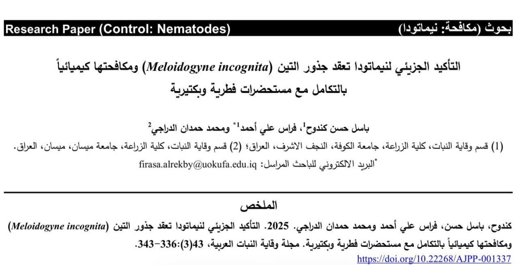تدريسي من جامعة ميسان /كلية الزراعة /قسم وقاية النبات ينشر بحثين خلال عام 2025-2026 .