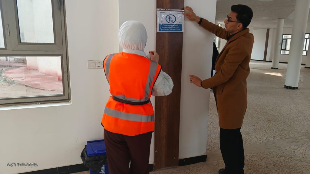 وتضمن النشاط وضع حاويات لمكبّات النفايات في الممرات الداخلية للقسم، فضلاً عن نصب لوحات إرشادية توعوية تهدف إلى حثّ الطلبة والمنتسبين على الالتزام بالنظافة، والحد من رمي النفايات عشوائيًا، بما يسهم في خلق بيئة جامعية نظيفة وصحية تعكس الوعي الحضاري والمسؤولية المجتمعية.