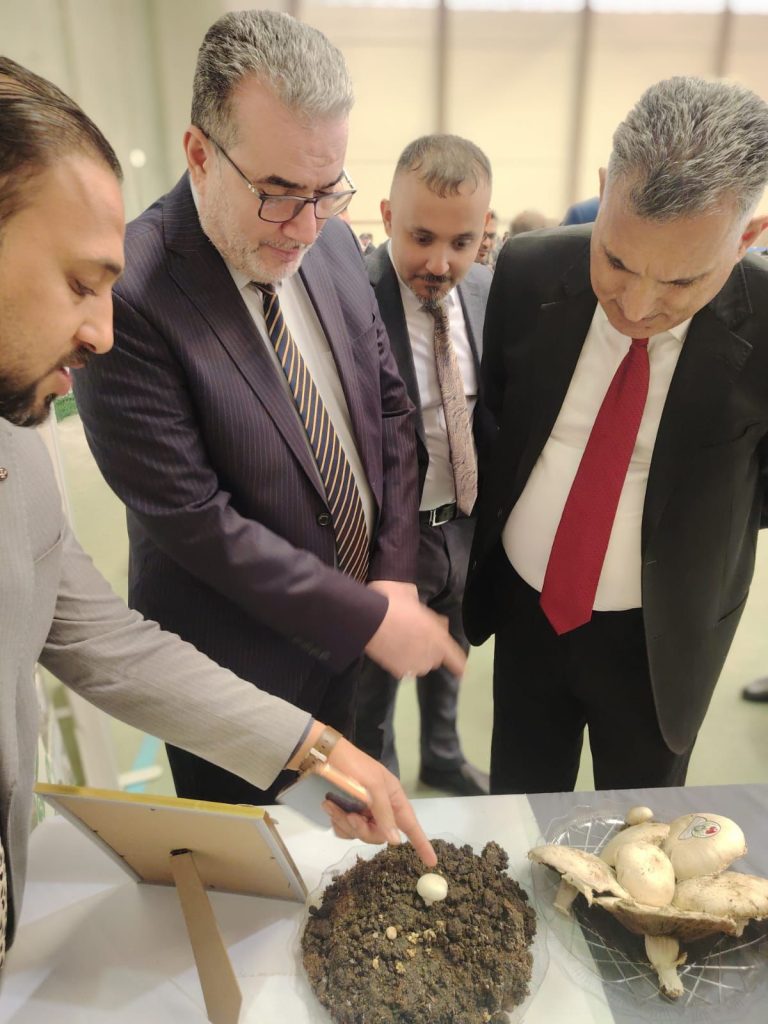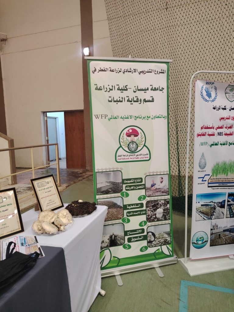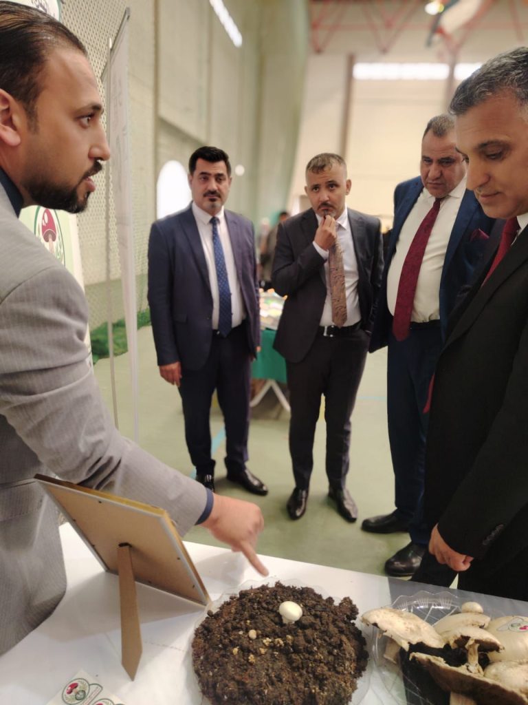حيث تم عرض نتاجات ابحاث الطلبة بزراعة الفطر المشروم في كلية الزراعة وشرح تفصيلي من الزراعة الى الانتاج.