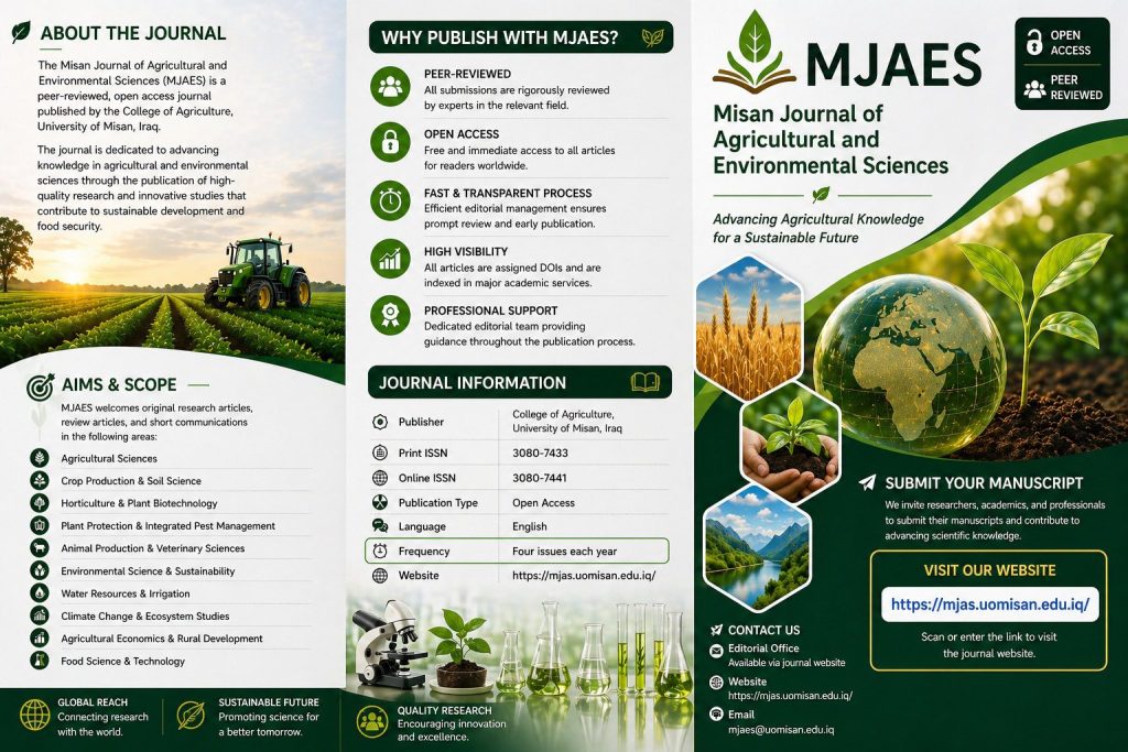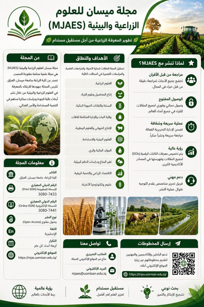للمزيد من التفاصيل أو لتقديم بحوثكم، يمكنكم زيارة الموقع الإلكتروني للمجلة: https://mjas.uomisan.edu.iq/