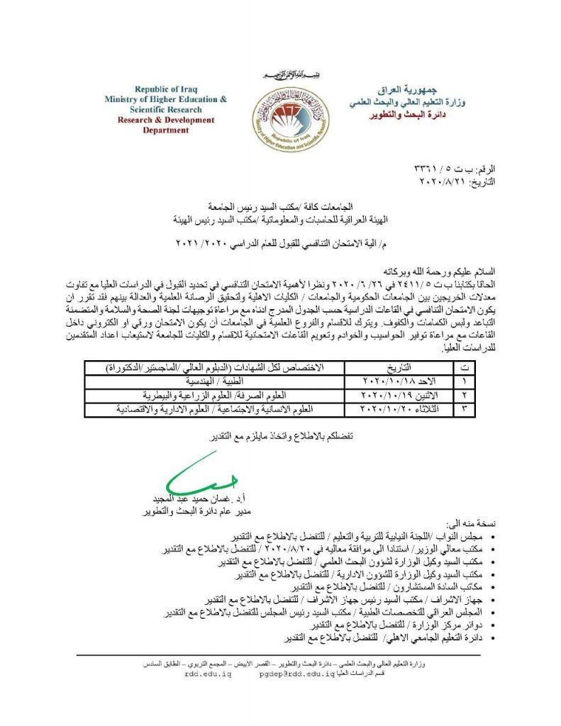 التعليم تعلن عن إجراء الامتحان التنافسي للقبول في الدراسات العليا للعام 2020/2021 في القاعات الدراسية*