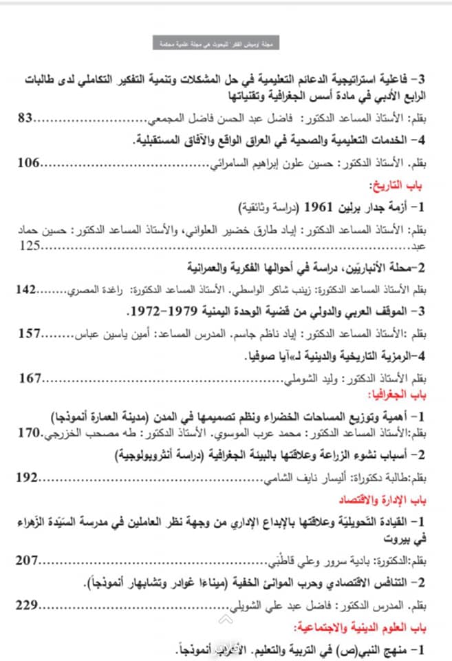 نشرت مجلة فكر وميض اللبنانية التي تصدر عن دار النهضة العربية للأستاذ الدكتور محد عرب الموسوي / رئيس قسم الجغرافيا في كلية التربية الأساسية / جامعة ميسان بحثا بعنوان ( أهمية المساحات الخضراء ونظم تصميمها – مدينة العمارة انموذجا ) ..