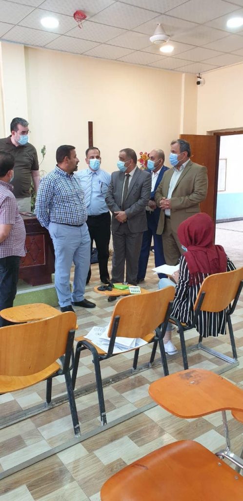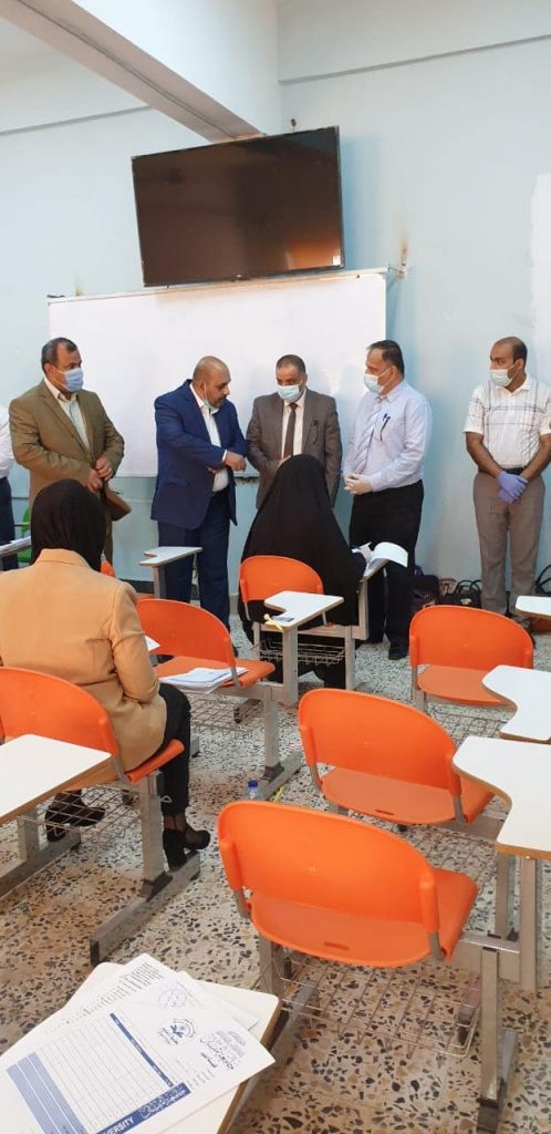 الاستاذ الدكتور عبد الباسط محسن عيال رئيس الجامعة تفقد اجراءات الامتحان التنافسي في كليات العلوم والتربية البدنية وعلوم الرياضة و رافقه خلال جولته الاستاذ الدكتور عادل مانع الكعبي مساعد رئيس الجامعة للشؤون العلمية ، و اكد على تهيئة القاعات الامتحانية و توفير مستلزمات الصحة و الوقاية و الالتزام بالتباعد و توفير افضل الاجواء للطلبة , و استفسر من الطلبة عن طبيعة الاسئلة و شموليتها و ثمن الجهود المبذولة من اللجان الامتحانية .