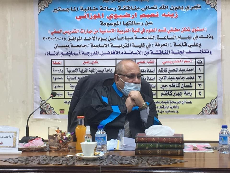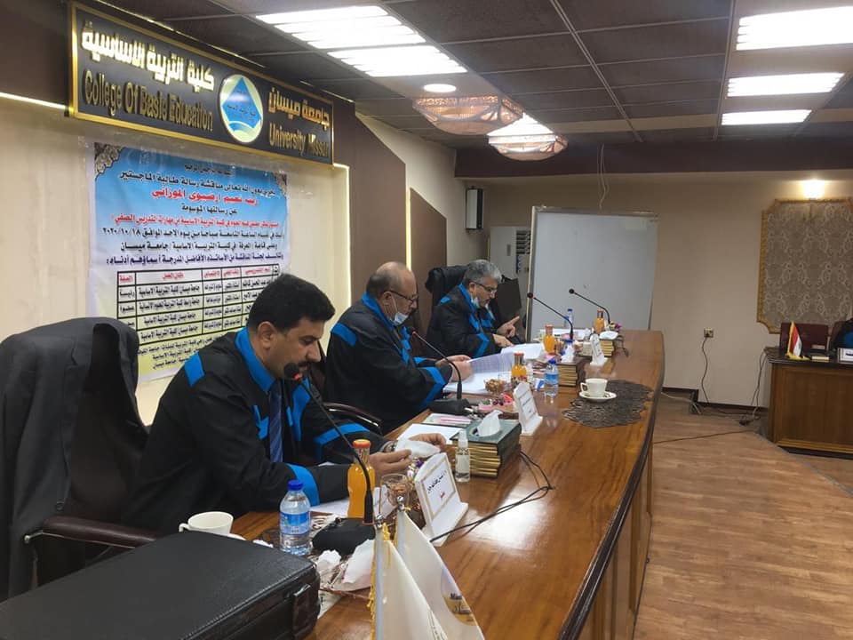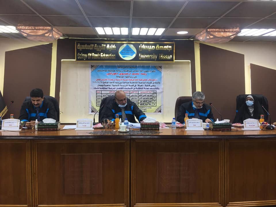 كلية التربية الاساسية في جامعة ميسان تناقش رسالة ماجستير عن مستوى تمكن مطبقي قسم العلوم في كلية التربية الاساسية