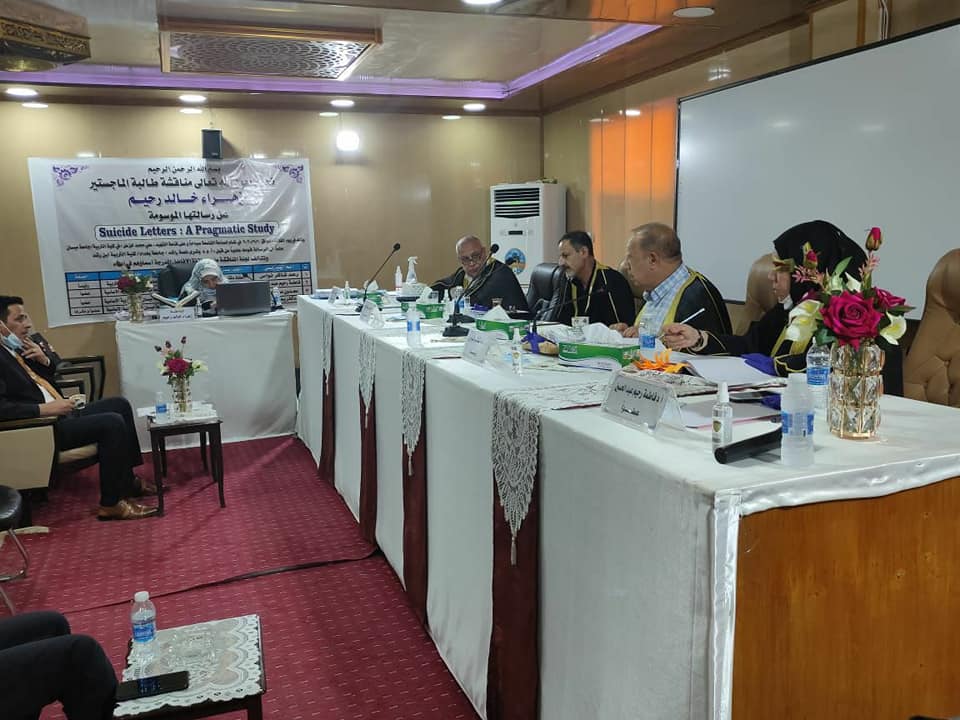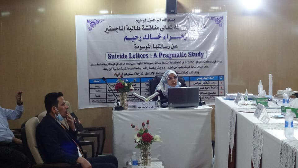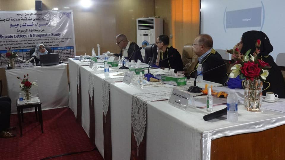 رسالة ماجستير في جامعة ميسان تناقش رسائل الانتحار: دراسة تداولية ناقشت رسالة الماجستير في جامعة ميسان / كلية التربية / قسم اللغة الانكليزيه الموسومة (رسائل الانتحار: دراسة تداولية) التي تقدمت بها طالبة الدراسات العليا (زهراء خالد رحيم) وبإشراف الاستاذ الدكتور (عبد الكريم لازم بهير) تضمنت هذه الرساله نظرية أفعال الكلام في أربعين رسالة إنتحار مختارة من وجهة نظر تداولية و الجانب العملي يتم من خلاله تحليل رسائل الانتحار الإنجليزية وفقًا لنظرية سيرل (1969) لأفعال الكلام. وبالتالي، فهي تهدف إلى إجراء تحليل عملي لأربعين رسالة انتحار من أجل تحديد أفعال الكلام التي يتم تنفيذها في خطابات الانتحار. فضلا عن الحصول على عرض لكيفية عمل نظرية الفعل الكلامي لسيرل في رسائل الانتحار و إظهارامكانية إجراء دراسة لحالة خطابات الانتحار بشكل عملي. وبالتالي، تهدف الدراسة إلى اكتشاف أفعال الكلام في خطابات الانتحار وتأثير التفكير في الانتحار على لغة الأشخاص المنتحرين وأفعال الكلام التي يستخدمها هؤلاء الأشخاص. لتحقيق أهداف هذه الدراسة، يُفترض أن: (1) يوجد العديد من أفعال الكلام في تحليل الرسائل الانتحارية ، (2) وفيما يتعلق بالأفعال ، يُفترض أن نوع الفعل الذي يستخدم في الغالب في بناء رسائل الانتحار هو التأكيدات. التأكيدات (التي هي نوع واحد من نظرية أفعال الكلام) مثل (الإخبار والإفادة والتأكيد والختام) بالأضافه الى الأفعال التعبيرية (التي تعبر عن نوع من الحالة النفسية) مثل (الترحيب والشكر والاعتذار والشكوى والتهنئة) إلخ و التي ستظهر أكثر من الأنواع الأخرى من نظرية أفعال الكلام. تنقسم هذه الدراسة إلى خمسة فصول الفصل الأول يقدم أساسيات الدراسة، يوضح مشكلة الدراسة، الفرضيات، إجراءات الدراسة، أهداف الدراسة، البيانات، حدود الدراسة وأهمية الدراسة. يقدم الفصل الثاني نظرة تفصيلية حول أدبيات الدراسة. كذلك يسلط الضوء على مفهوم الانتحار وعلاقته باللسانيات ويستكشف المفاهيم الأساسية لعلم الانتحار، معناه، أنواع الانتحار، نظرية افعال الكلام ( نظرية سيرل) بالإضافة إلى ملاحظات تمهيدية حول التداولية. يتناول الفصل الثالث البيانات والإجراءات المتبعة في تحليلها والصعوبات في جمعها. أختص الفصل الرابع بالتحليل العملي لرسائل الانتحار و يتخذ نموذج سيرل(1969) أداة للتحليل التداولي.الفصل الخامس هو نتائج التحليل العملي والتوصيات واقتراحات للمزيد من الدراسات. تظهر نتائج الدراسة أن أفعال الكلام التي تستخدم في الغالب في تشكيل خطابات الانتحارهي افعال التأكيد او التوضيح والافعال التعبيرية. تستخدم أنواع أخرى مثل الافعال الإلزامية والتوجيهية والإعلانية أقل من افعال الكلام أعلاه.