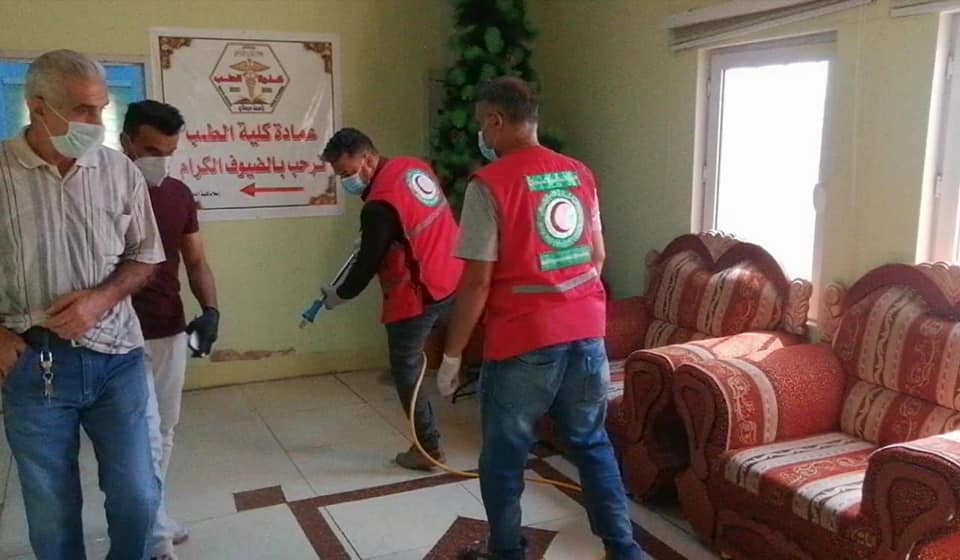 نظمت كلية الطب في جامعة ميسان وبالتعاون مع جمعية الهلال الأحمر العراقي فرع ميسان ، حملة تعفير وتعقيم لبناية الكلية للوقاية من خطر فيروس كورونا ، وباستخدام الوسائل الطبية والصحية، وشمل التعفير عمادة الكلية والفروع العلميةوالشعب الإدارية كافة ، فضلاً عن ممرات الكلية، وقد ثمن السيد عميد الكلية الدكتور ياسين عبيد ياسين ، الجهود الكبيرة التي تبذلها جمعية الهلال الاحمر في تعفير وتعقيم المؤسسات للحد من انتشار فيروس كورونا .
