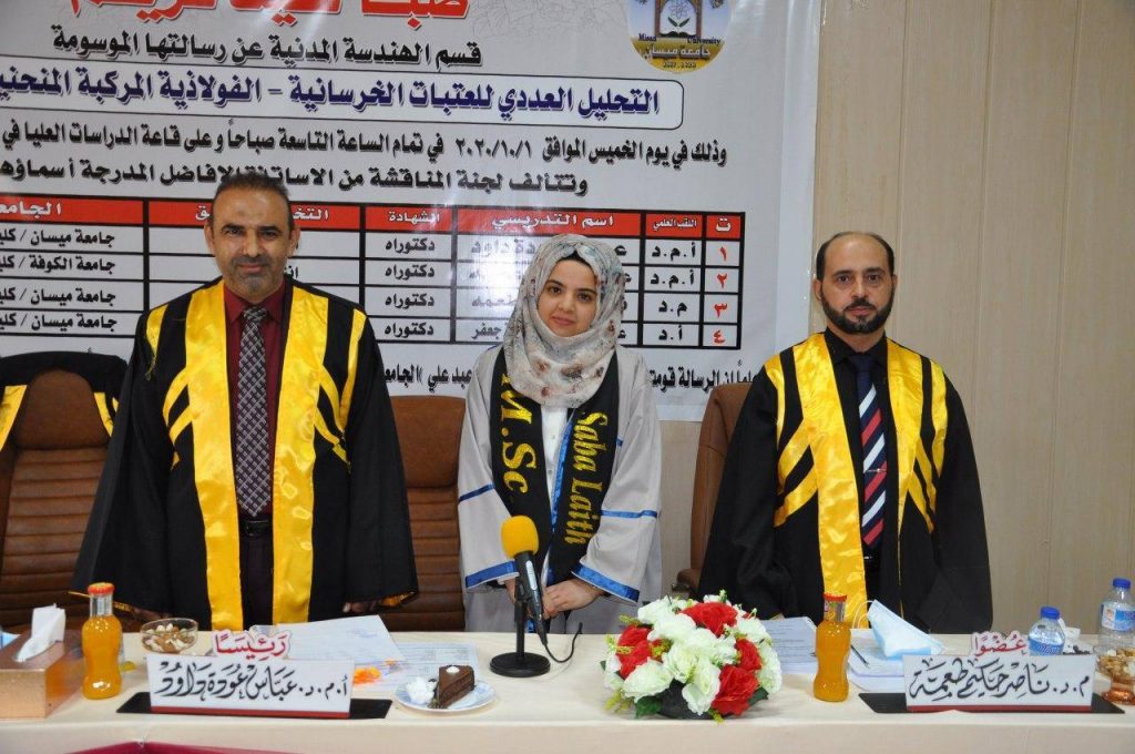 شهد قسم الهندسة المدنية في كلية الهندسة-جامعة ميسان مناقشة رسالة الماجستير الموسومة:Numerical Analysis of Steel-Concrete Composite Beams Curved in Planeللطالبة ” صبا ليث كريم ” بإشراف أ.د. عبد الخالق عبد اليمة جعفر، حيث ترأس لجنة المناقشة أ.م. د. عباس عودة داود وكانت اللجنة بعضوية أ.م. د علي ناجي عطية و م. د. ناصر حكيم طعمة.تناولت هذه الدراسة تحريات نظرية للتحقق من سلوك العتبات الخرسانية – الفولاذية المركبة المنحنية في المستوى باستخدام برنامج ABAQUS، اذ تم استخدام العتبة المركبة ذات مقاومة الخرسانة العادية مع أو بدون فتحات للعتبة الفولاذية المصممة بأسناد بسيط، علاوة على ذلك، تم إجراء تقنية تقوية عن طريق إضافة شرائح فولاذية داخلية.وأيضا تناولت دراسة تأثير عدة متغيرات على هذا النوع من العتبات منها مدى نسبة الانحناء، والتقوية المستعرضة، والارتباط الجزئي، وقوة الانضغاط الخرسانية، والإجهاد الناتج عن الحزمة الفولاذية، وعمق وشكل الفتحة، واستخدام شرائح فولاذية داخلية لاستعادة النقص الحاصل نتيجة وجود الفتحة. وقد توصلت الدراسة الى ان مدى نسبة الانحناء يؤثر على قدرة التحميل، وخضوع العتبة وانحناء الحزمة الفولاذية بسبب تأثير عزم الالتواء، اما زيادة الارتباط الجزئي اظهر انخفاضًا كبيرًا في الفصل الرأسي والواجهة بين البلاطة الخرسانية وحافة العارضة الفولاذية مع زيادة قدرة التحمل بنحو 30 %، وأن زيادة عمق الفتحة يؤدي إلى تقليل قدرة قوة العتبة المركبة ويصبح خضوع العتبة في وقت أبكر مع زيادة الشقوق الالتوائية، علاوة على ذلك تعتبر مقويات العتبة الفولاذية طريقة جيدة لتعزيز قدرة العتبة المركبة، اذ انها توفر استعادة شبه كاملة للقوة المفقودة بسبب وجود الفتحات مع تعزيز في أداء العتبة المركبة .