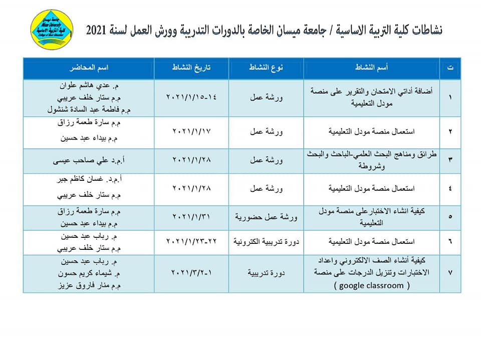  تهيئة البنية التحتية الملائمة لعملية التعليم والتعلم