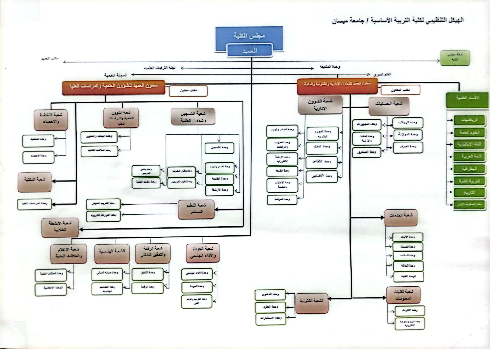 الهيكل التنظيمي لكلية التربية الأساسية / جامعة ميسان :