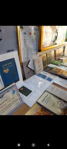 المحور الثالث: معرض تضمن انتاجهات استاتيذ القسم وطلبته، إذ عرضت به مؤلفات الاستاذة، والاعمال اليدوية والخط العربي لطلبة القسم .