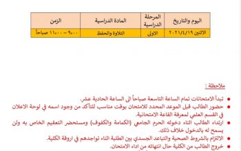جدول الأمتحانات الحضورية لطلبة قسم الجغرافيا في كلية التربية الأساسية للفصل الدراسي الأول للعام الدراسي 2020 – 2021 .