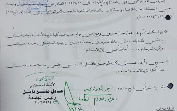 أشرف الدكتور عمار جبار حسين الوهج عميد كلية التربية الأساسية على سير الامتحان الشامل لطلبة الدكتوراه خلال جولة تفقدية شملت القاعات للاطلاع على الأجواء التي تجرى فيها الامتحانات.