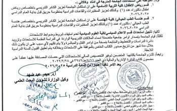 *بخصوص اي استفسار التواصل مع رقم الجوال ممثل جامعتنا المدرس المساعد حيدر مسلم داود.