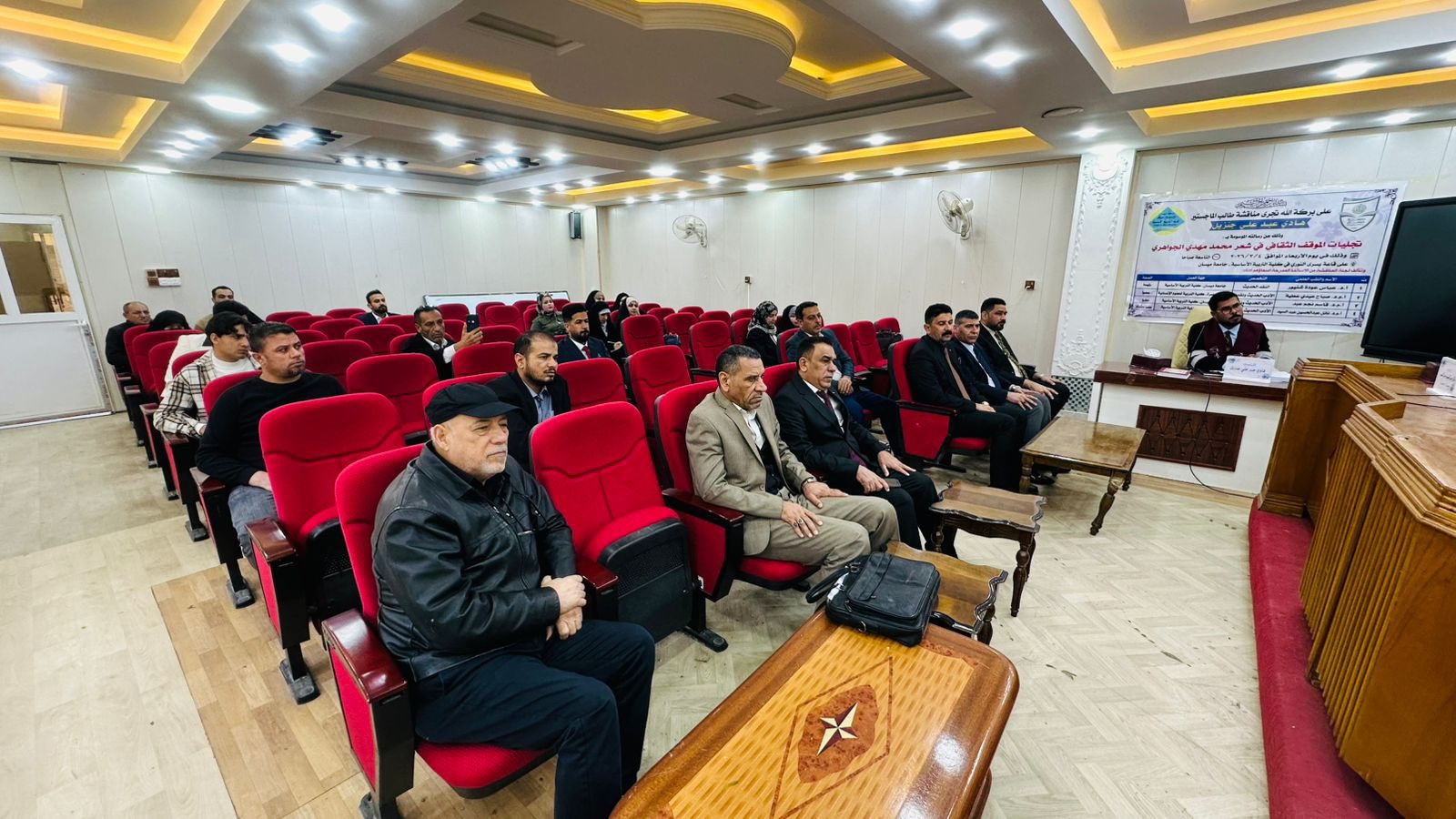 كلية التربية الأساسية في جامعة ميسان تناقش رسالة ماجستير عن تجليات الموقف الثقافي في شعر محمد مهدي الجواهري.