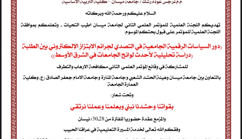 شكر وتقدير من قبل جامعة الكوفة / كلية الاداب
