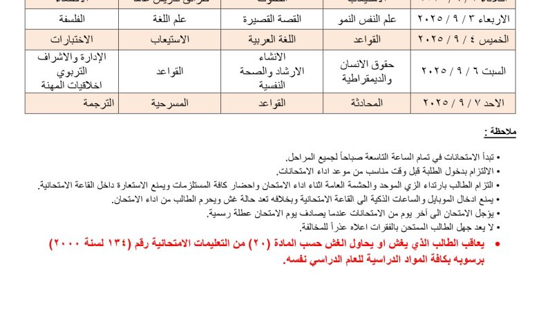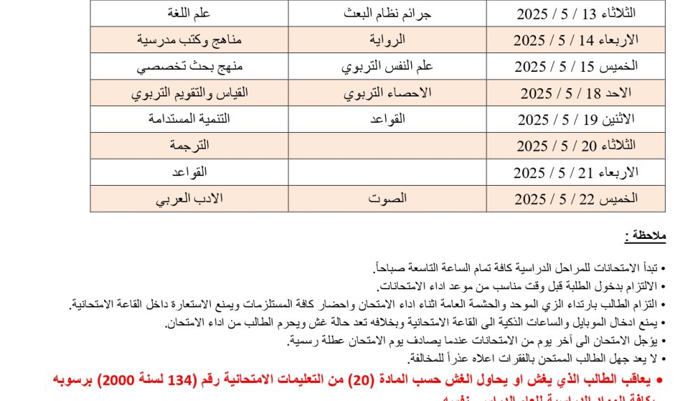 بناءً على ماجاء بالأمر الوزاري ذي العدد 4022 في 26 / 5 / 2025 والمتضمن…