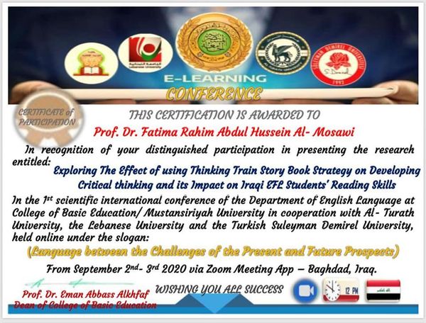 (Inst. Haifa’a Khadhim and Asst. Lect. Issa Safa’a) participated in the first international conference which was held by Al-mustansryia University/ College of Basic Education/ English Department.