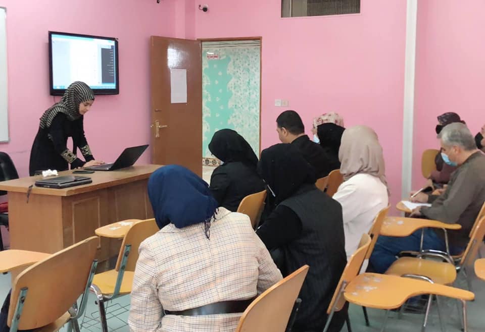 organized a training workshop on setting up the test on the model platform to enhance the technical information for the exam with the department’s teachers in conjunction with the quarterly exams and discussing exam matters. The workshop was prepared by the teaching staff in the department, Eng. Sarah Tohme Al-Saray and M. Beda Abd Hussein .