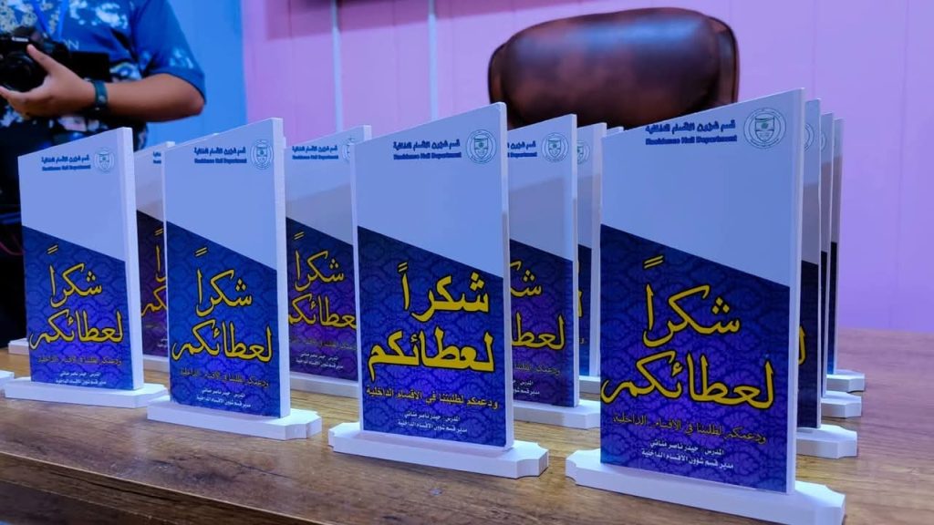 أقيم الحفل في قاعة زها حديد النموذجية، واستُهل بتلاوة آياتٍ مباركة من الذكر الحكيم، أعقبها كلمة ترحيبية ألقاها السيد مدير الأقسام الداخلية، عبر فيها عن عميق شكره وامتنانه للمؤسسات والكليات والفرق التطوعية التي كان لها الدور البارز في تقديم السلال الغذائية ومآدب الإفطار، فضلاً عن إسهاماتهم الثقافية والإنسانية التي أضفت طابعاً روحياً على حياة الطلبة في هذا الشهر الفضيل.