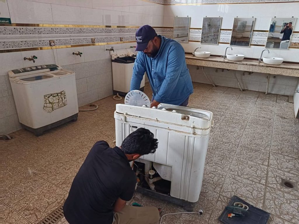 بروح لا تعرف الكلل ولا الملل تتابع فرق الصيانة مهامها اليومية من صيانة الأجهزة الكهربائية وغيرها إلى متابعة جاهزيتها