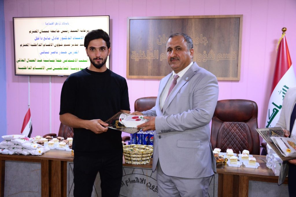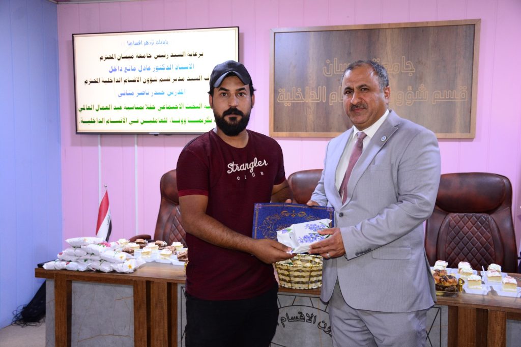 برعاية (الأستاذ الدكتور عادل مانع الكعبي)، رئيس جامعة ميسان، وبإشراف (المدرس حيدر ناصر مناتي)، نظمت شعبة البحث الاجتماعي في الأقسام الداخلية احتفالية تكريمية بمناسبة عيد العمال العالمي، وذلك على قاعة زها حديد في قسم الطالبات.