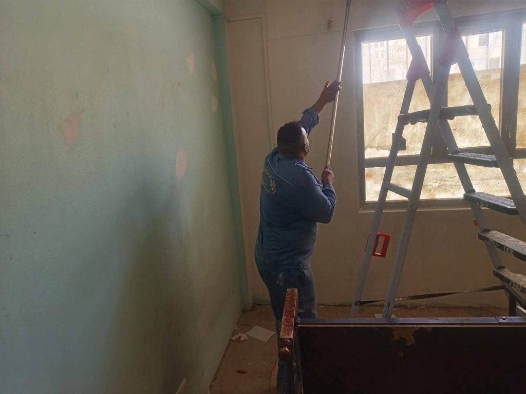 وتضمنت الأعمال طلاء الغرف، وصيانة واستبدال كيلونات الأبواب، وغسل أجهزة التبريد، وغيرها من المهام التي تهدف إلى تحسين بيئة السكن الجامعي.