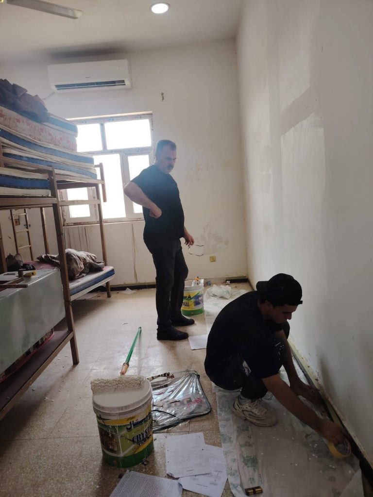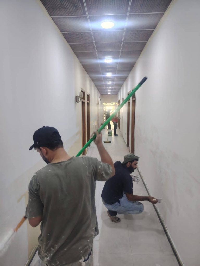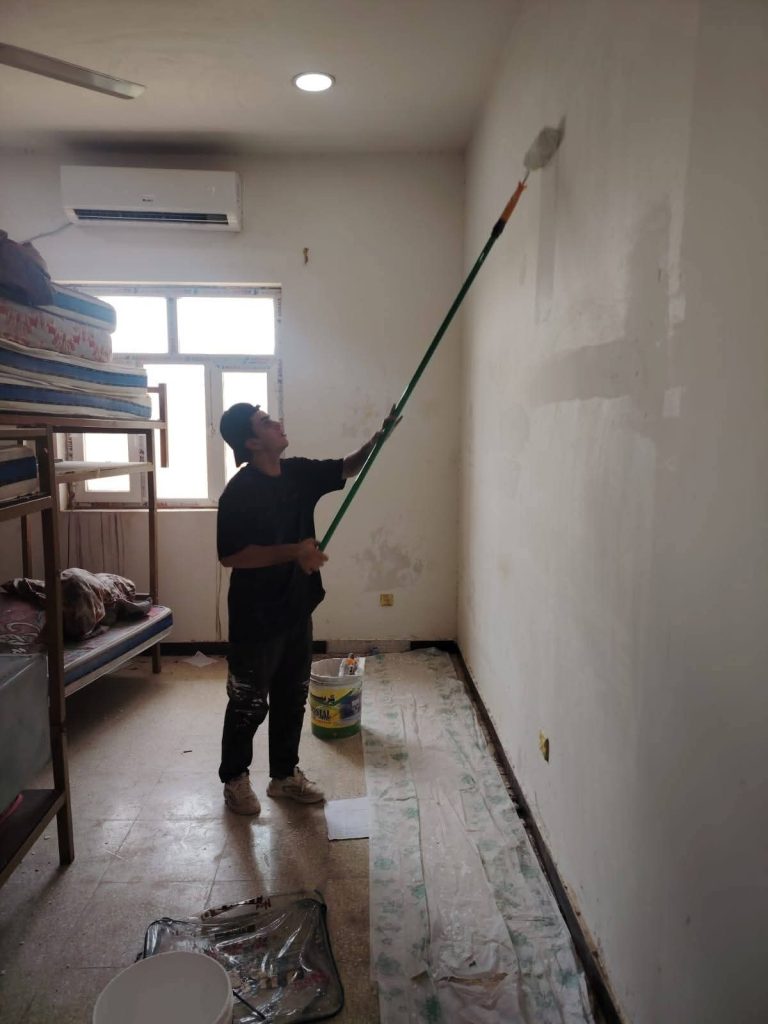 بعد أن أشرقت الألوان على جدران أقسام الطالبات، ها هي العجلة تدور لتصل إلى الأقسام الداخلية الخاصة بالطلبة.