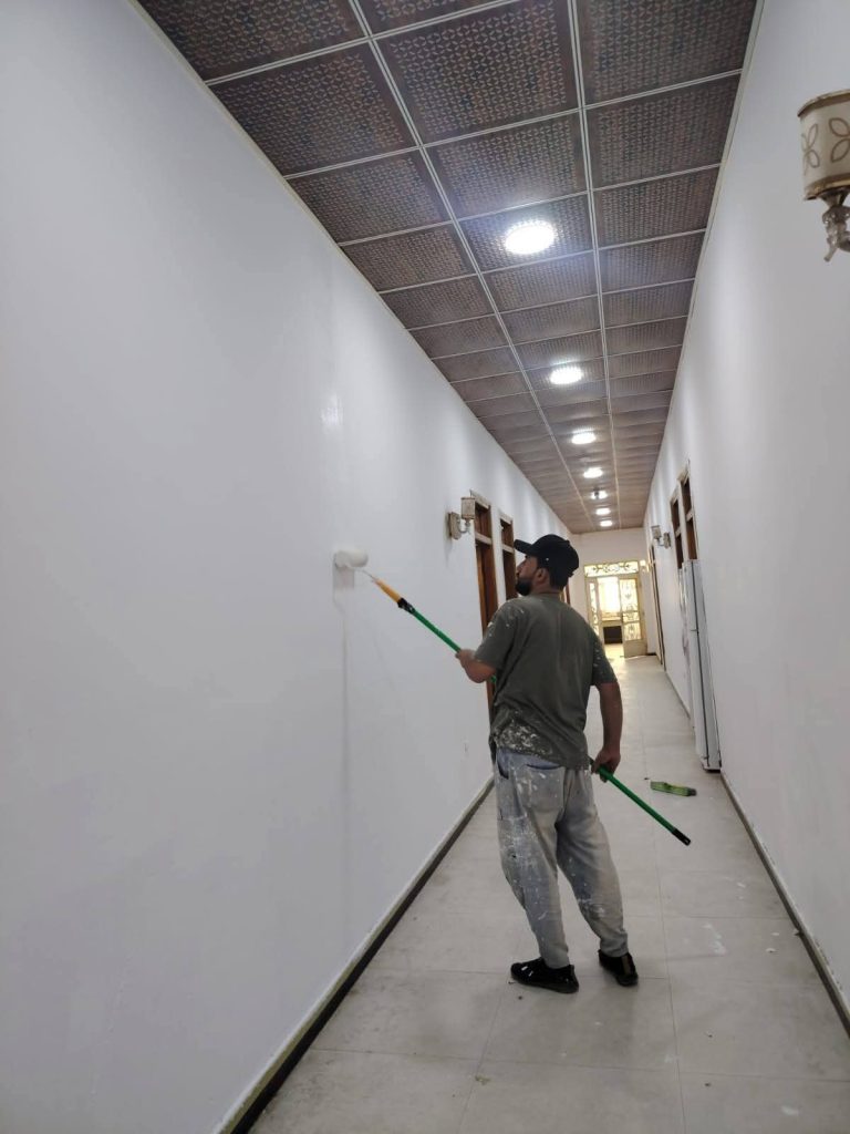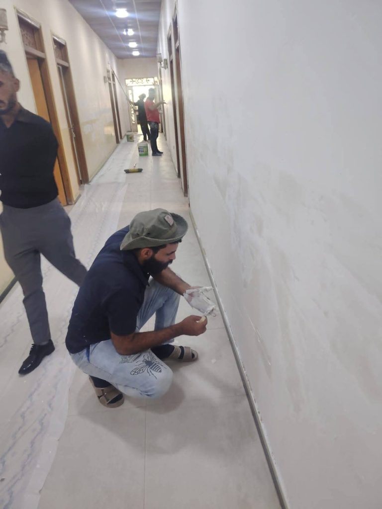 وبمتابعة مباشرة من المدرس حيدر ناصر مناتي مدير الأقسام الداخلية، تتواصل هذه الأعمال لتكون رسالة ترحيب للطلبة وهم يتهيأون للعودة، كأن الجدران نفسها تقول لهم: أهلاً بكم في بيتكم الثاني.