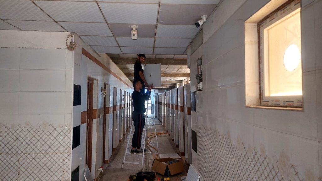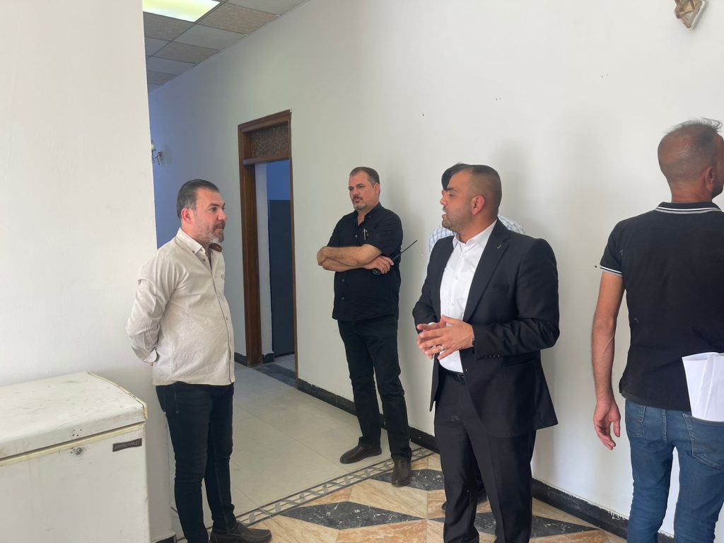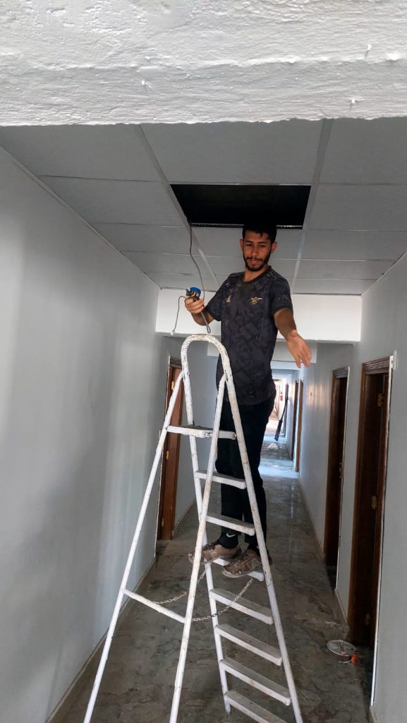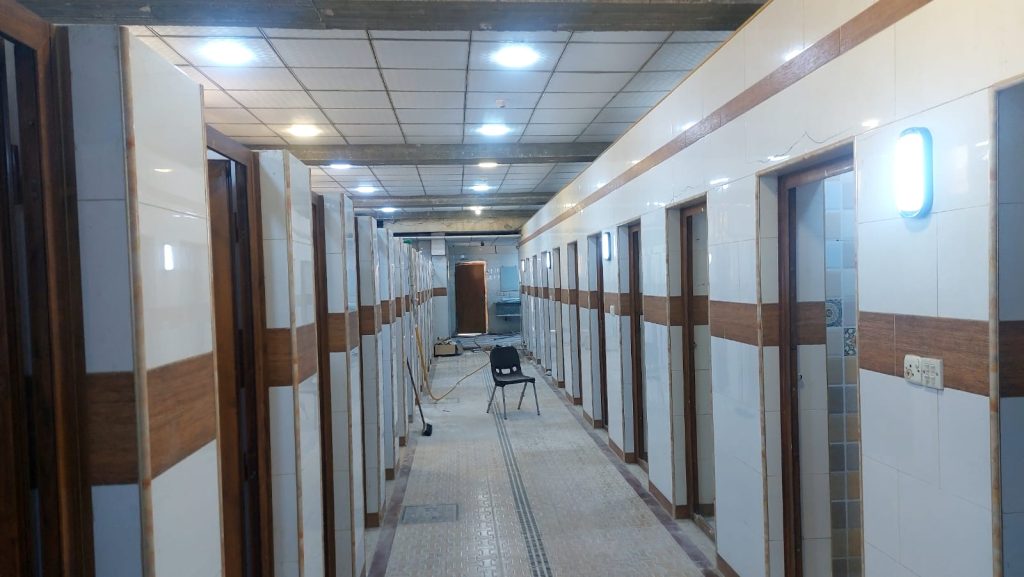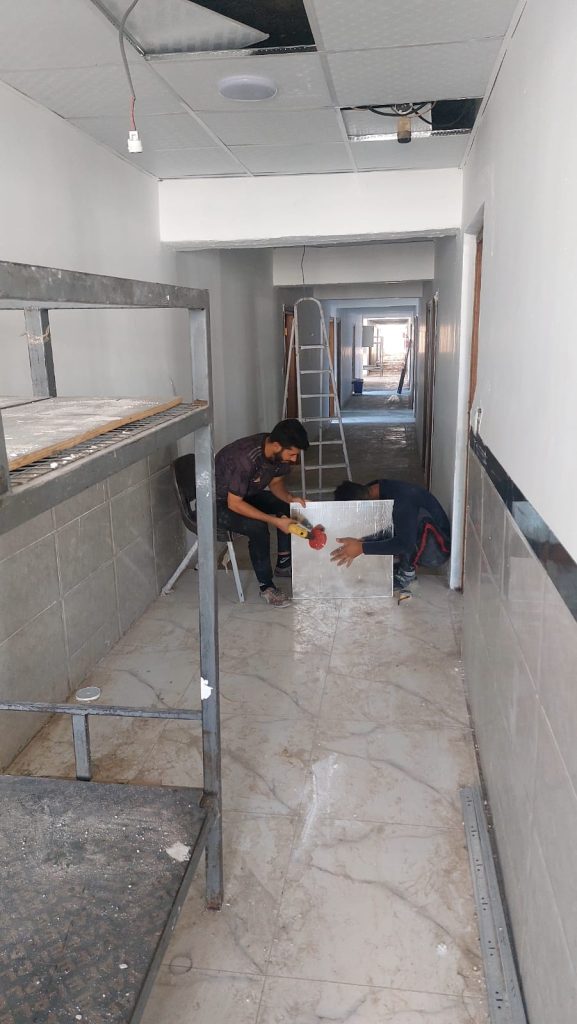 الجولة شملت متابعة أعمال التأهيل التي امتدت إلى كل زاوية من زوايا البناية، بدءًا من صيانة المجاميع الصحية وتهيئة الغرف، وصولاً إلى ترتيب الأثاث وتجهيز الخدمات، لتصبح البناية بيتًا يليق بأبنائنا الطلبة.