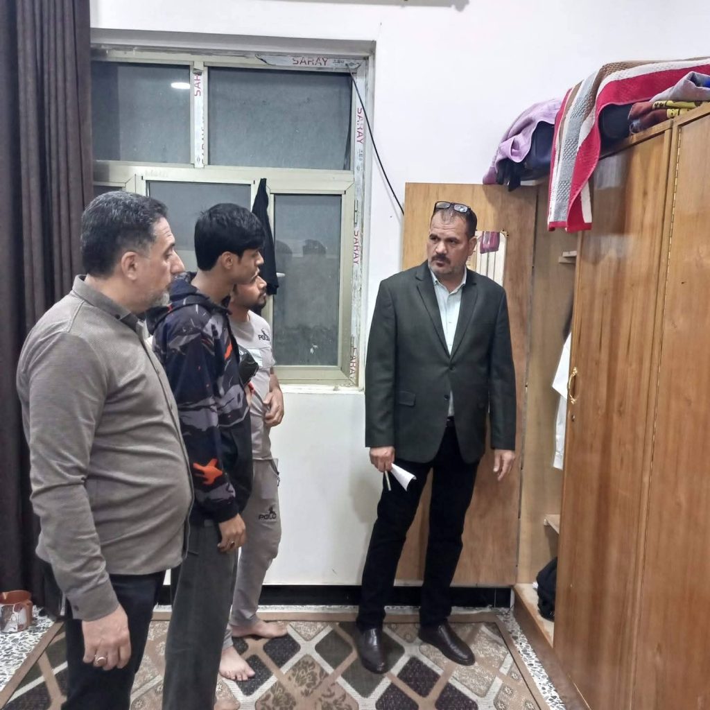 بتوجيه من السيد مدير قسم شؤون الأقسام الداخلية، المدرس حيدر ناصر مناتي اللامي، الذي يؤكد دائماً على أهمية المتابعة الميدانية والاهتمام الأبوي باحتياجات أبنائنا الطلبة، أجرى مسؤول المتابعة الأستاذ عبدالله رحيم باشط برفقة الأستاذ مصعب خماس عويد زيارة ميدانية إلى مجمع الأبحاث للاطلاع على واقع السكن الجامعي.