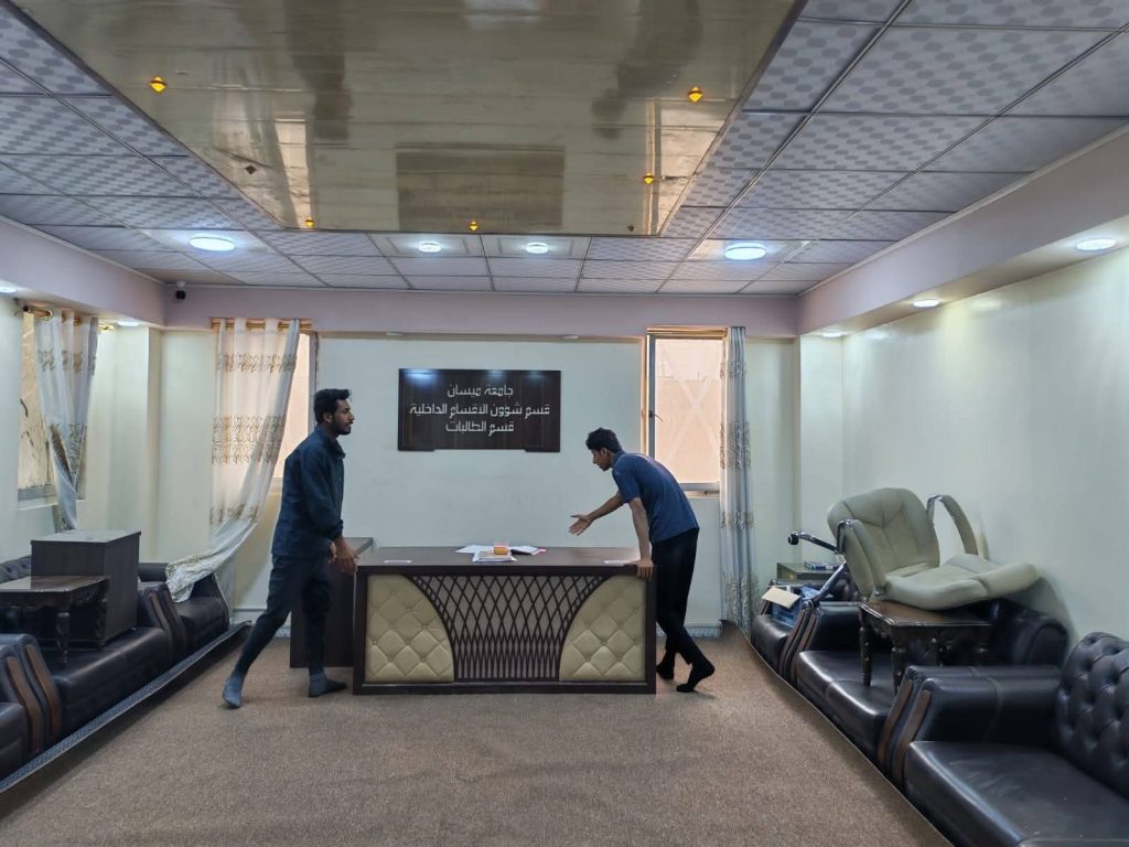 بخطوات هادئة تشبه بداية فصلٍ جديد، شرعت كوادر الأقسام الداخلية في جامعة ميسان هذا اليوم بأعمال تأهيل الاستعلامات وغرفة المعاونة في قسم الطالبات، لتكون البداية لمسار تطويري ينعكس على راحة الطالبات وجودة الخدمة المقدّمة لهن.