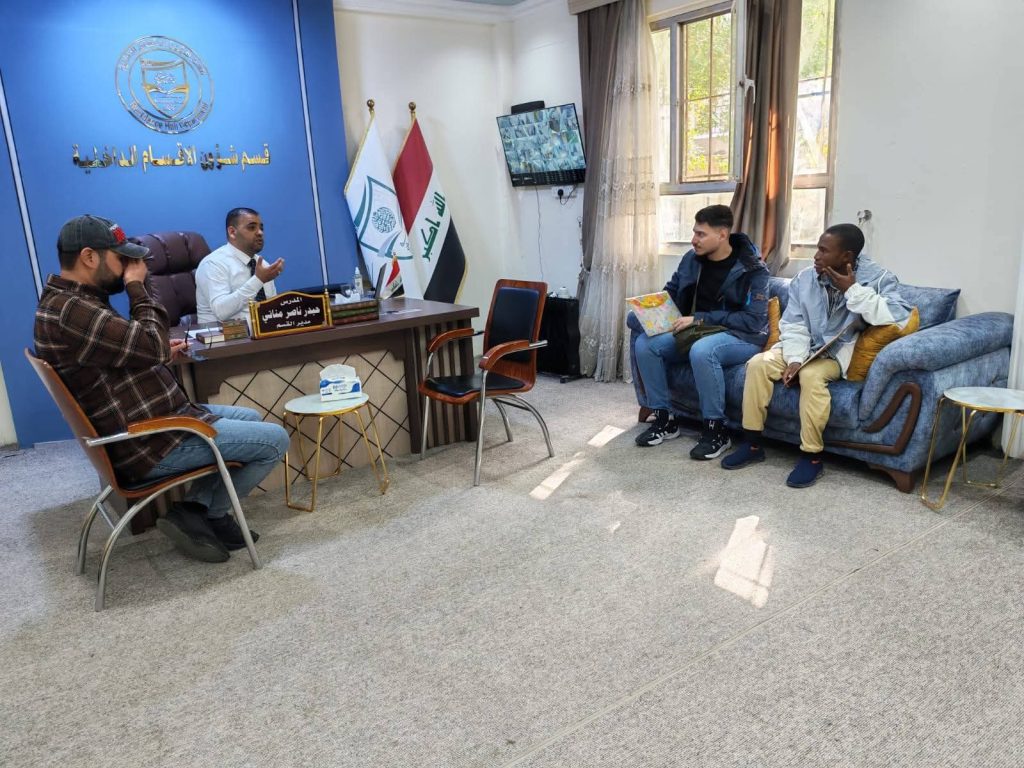 استقبل السيد مدير قسم شؤون الأقسام الداخلية في جامعة ميسان، المدرس حيدر ناصر مناتي، عدداً من الطلبة الدوليين الساكنين في الأقسام الداخلية ضمن مبادرة ادرس في العراق، حيث جرى الترحيب بهم والتأكيد على استمرار استقبال الطلبة الدوليين وتوفير بيئة سكنية ملائمة تدعم مسيرتهم الأكاديمية وتعزز اندماجهم في المجتمع الجامعي.