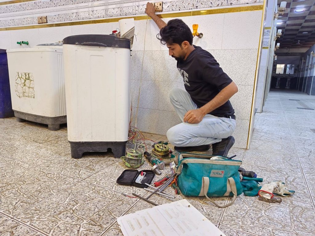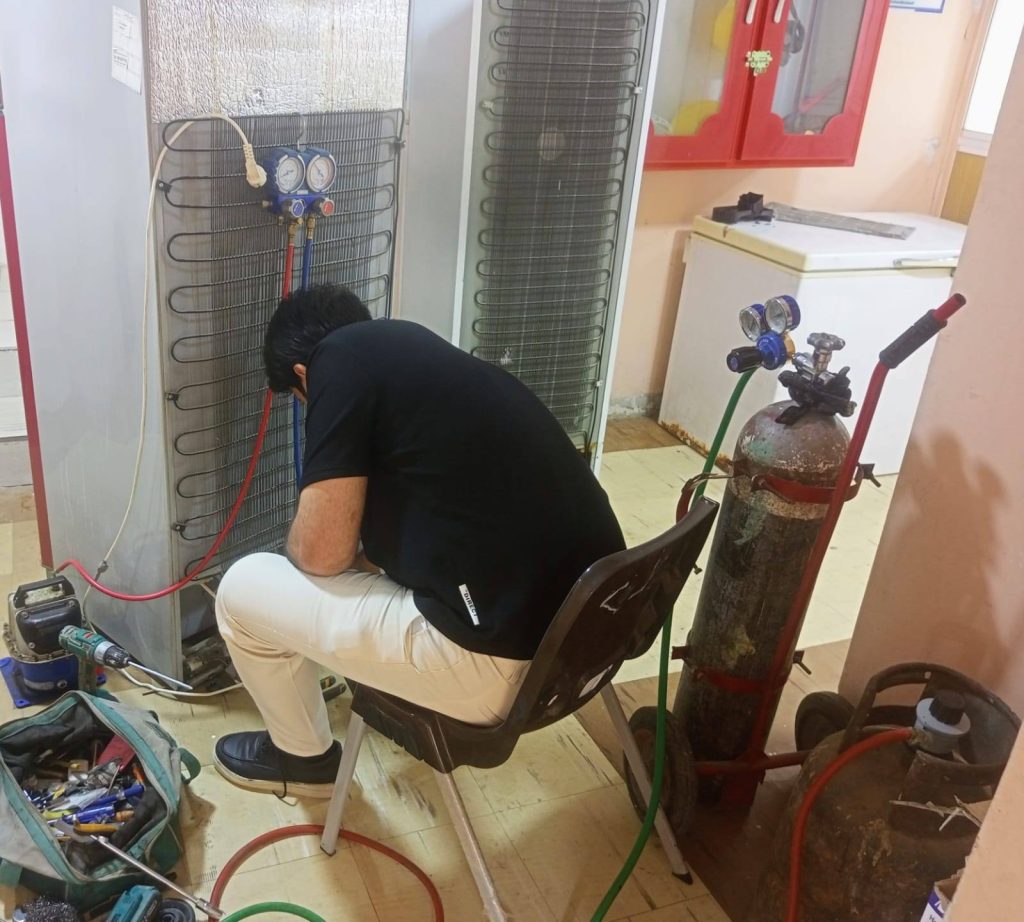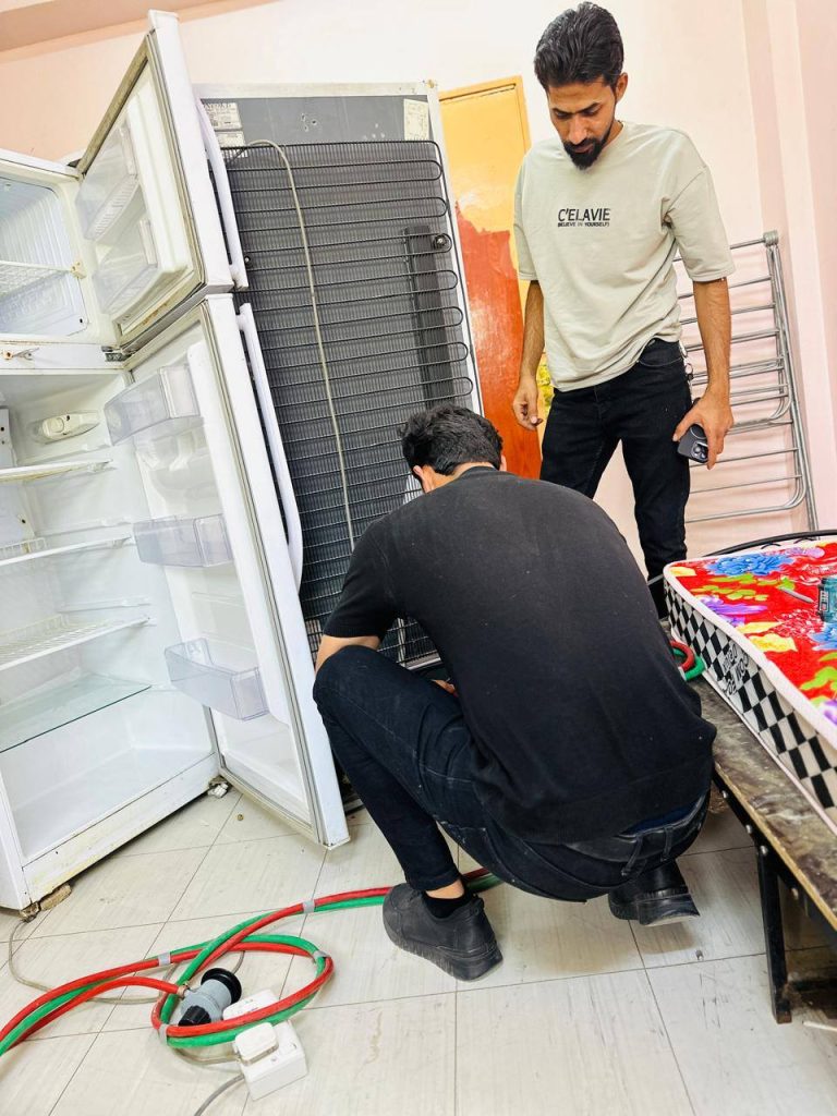 تواصل كوادرنا أعمال صيانة وإدامة منظومات التبريد في الأقسام الداخلية، حيث تشمل أعمالها فحص وتأهيل أجهزة التبريد، وصيانة الثلاجات والمجمدات والغسالات، ومعالجة الأعطال لضمان كفاءتها واستمرارية عملها، بتوجيه من مدير الأقسام الداخلية حيدر ناصر مناتي، ضمن جهودٍ متواصلة تهدف إلى توفير أجواء ملائمة وخدمات متكاملة للطلبة، بما يسهم في تعزيز مستوى الراحة والاستقرار داخل المجمعات السكنية.