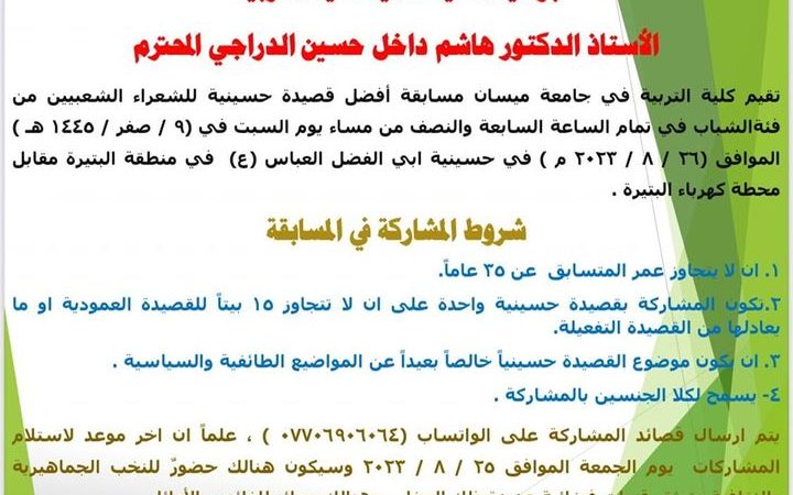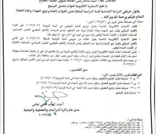 قال تعالى في محكم كتابه الكريم (وقل اعملوا فسيرى الله عملكم ورسوله والمؤمنون)، وايماناً بقدسية العمل ومنزلة العاملين شرعنا بعون الله وبمعاونة الخيرين بالتصدي لهذه المسؤولية المناطة بنا لنقدم ما في وسعنا من اجل وطننا العزيز ومدينتنا الحبيبة وجامعتنا المعطاء وزملائنا التدريسين واخواننا واخواتنا من الموظفين وطلبتنا الاعزاء في هذه الكلية للمزيد…