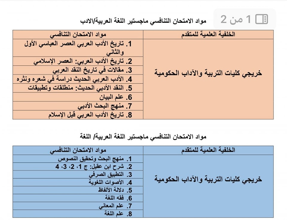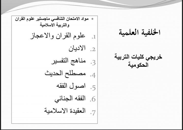 إعلان مواد الامتحان التنافسي للعام الدراسي ٢٠٢٥ – ٢٠٢٦