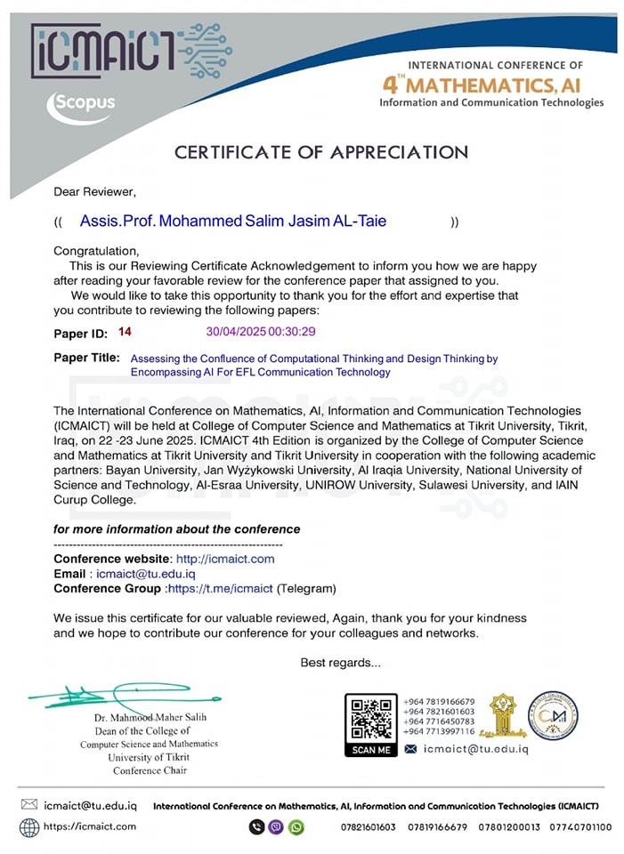 قام التدريسي في قسم الفيزياء بكلية التربية جامعة ميسان الأستاذ المساعد الدكتور محمد سالم جاسم