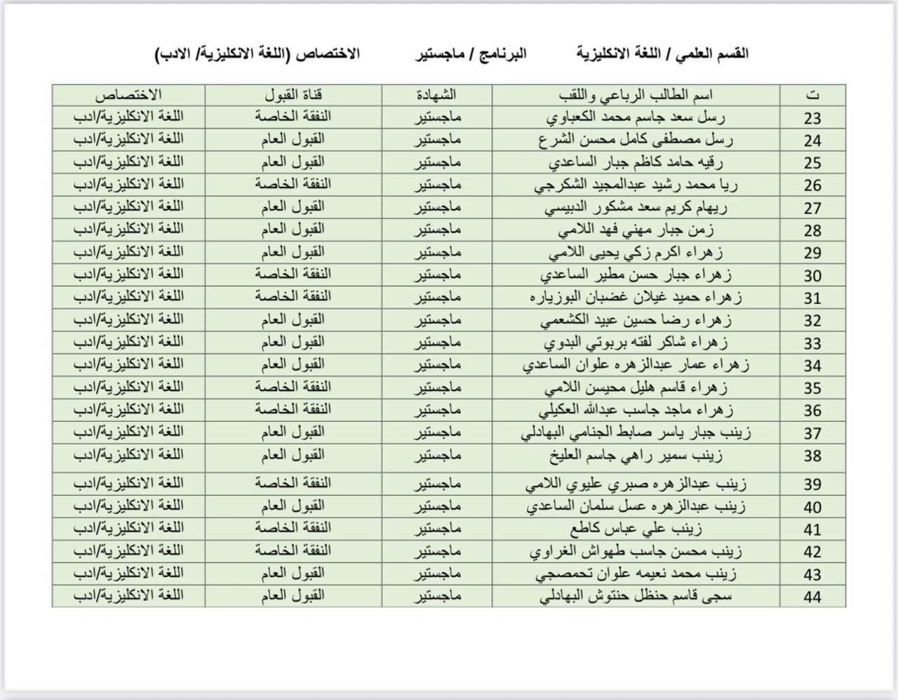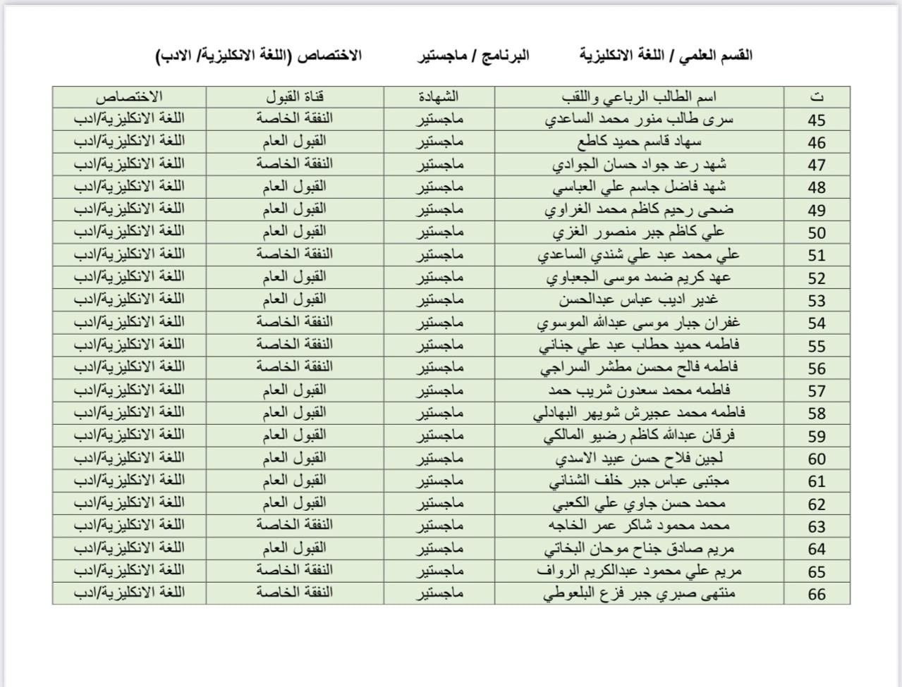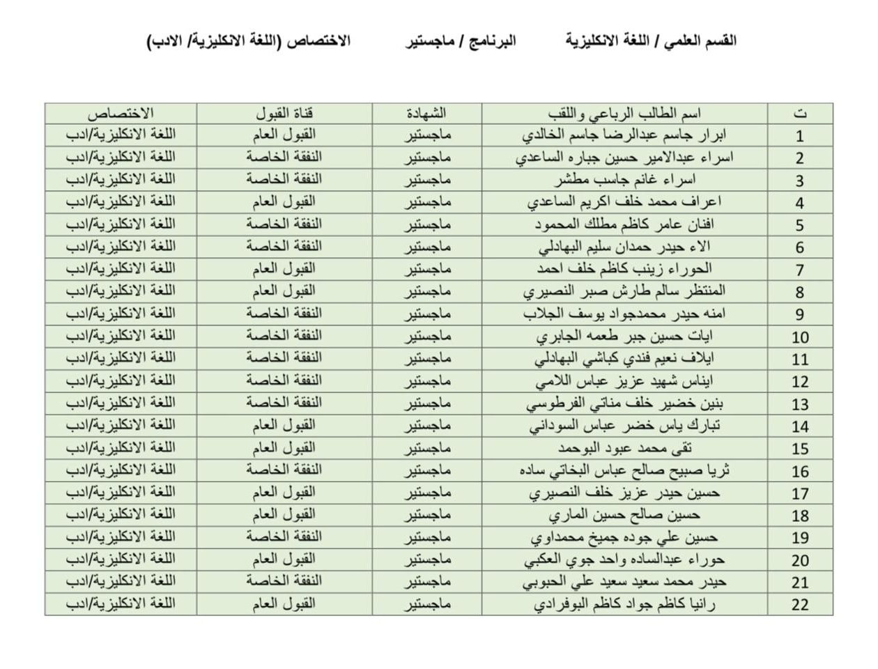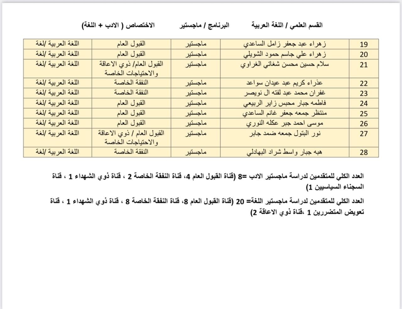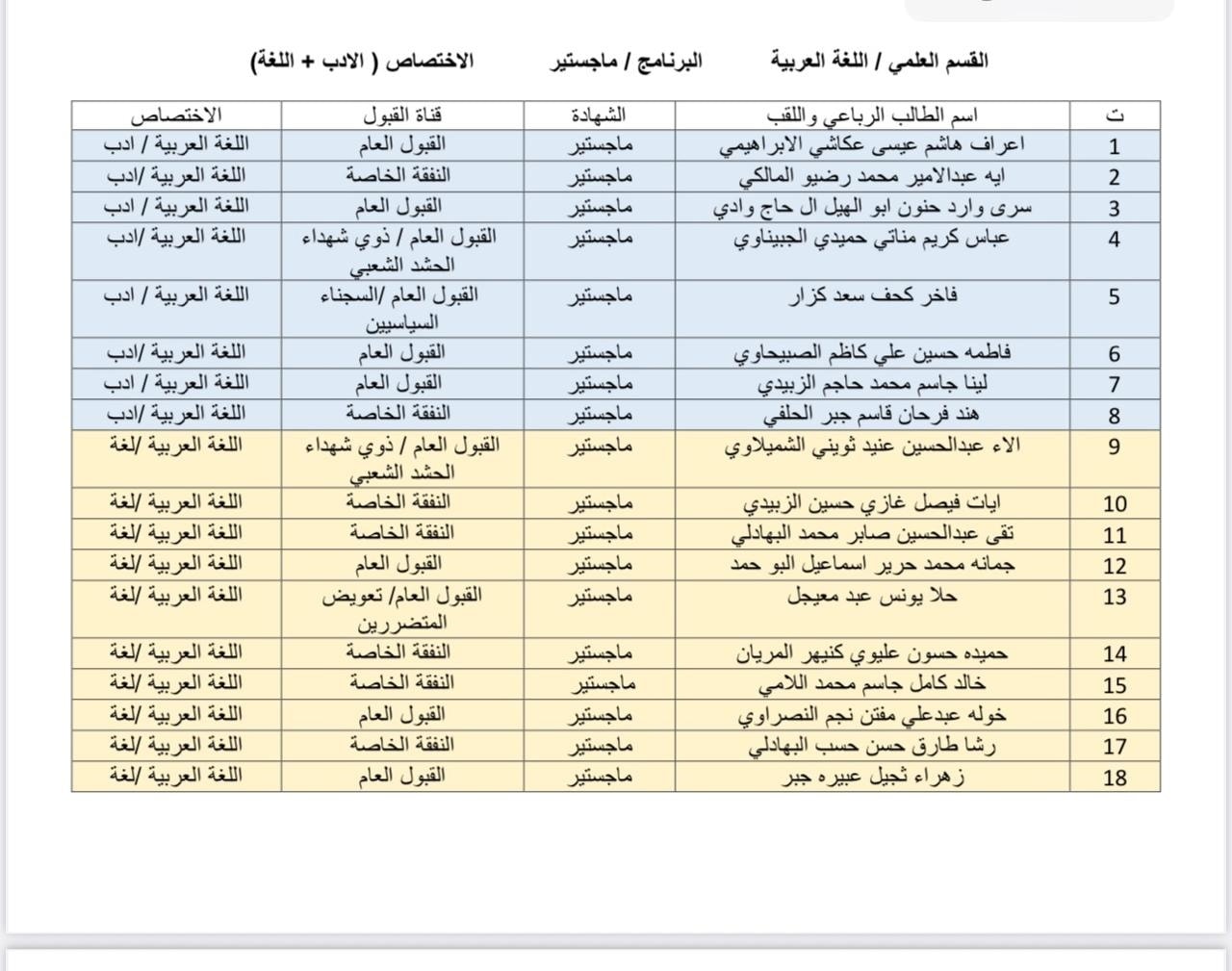 تعلن كلية التربية بجامعة ميسان عن أسماء المتقدمين الذين تم قبولهم لاجتياز الامتحان التنافسي للأقسام العلمية كافة للعام الدراسي 2025-2026. يأتي هذا الإعلان بعد استكمال المرحلة الأولية من عملية الاختيار،